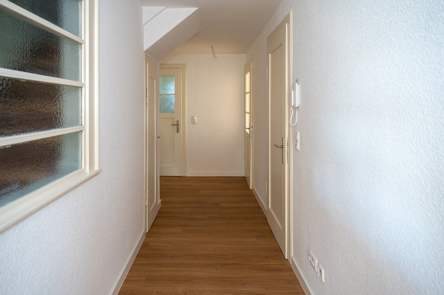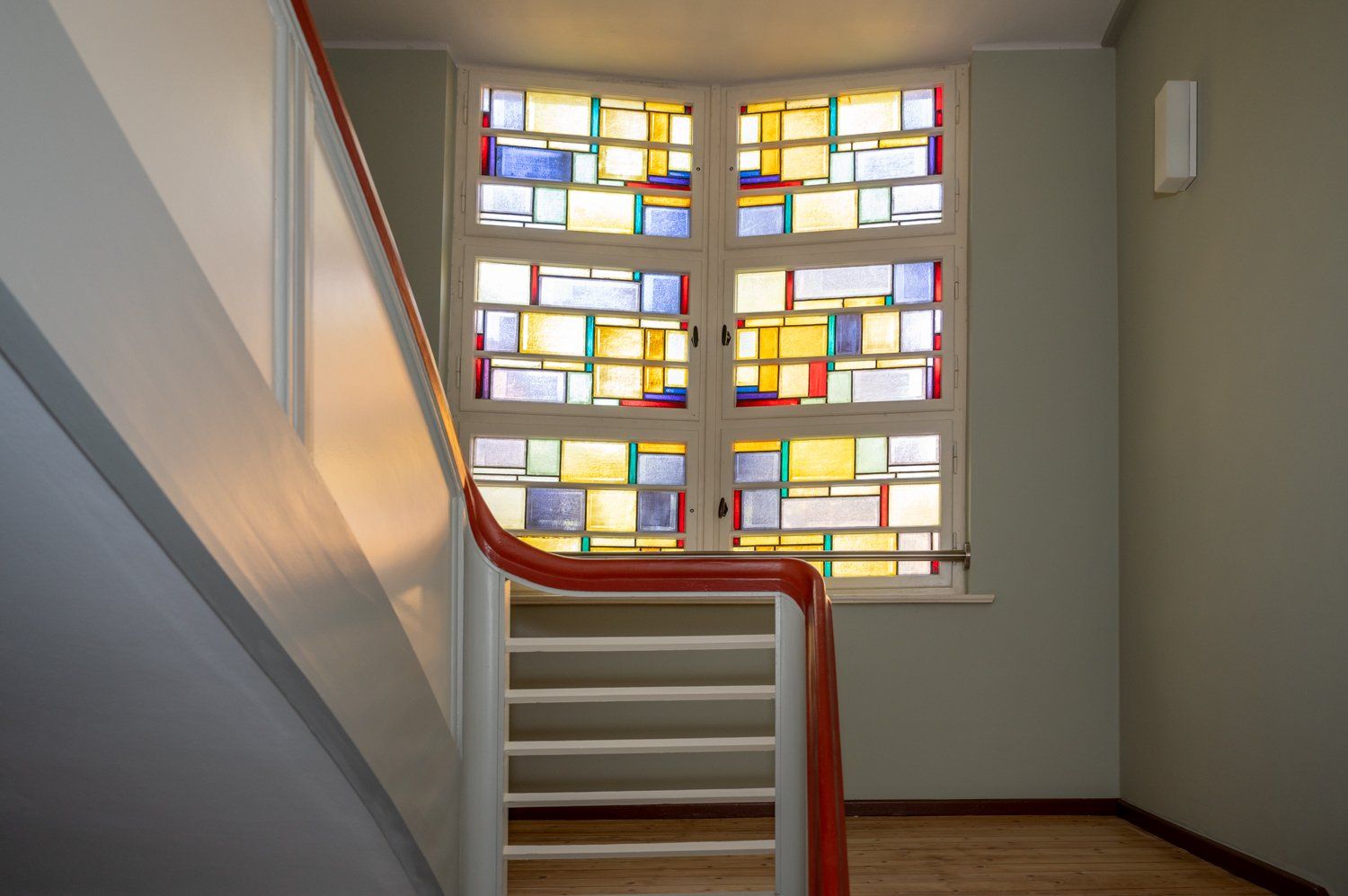 Besonders auffällig am Gebäude sind die schönen Bleiglasfenster und die „etwas andere Hausnummer“. Sie geben dem Wohnhaus ihren besonderen Stil.