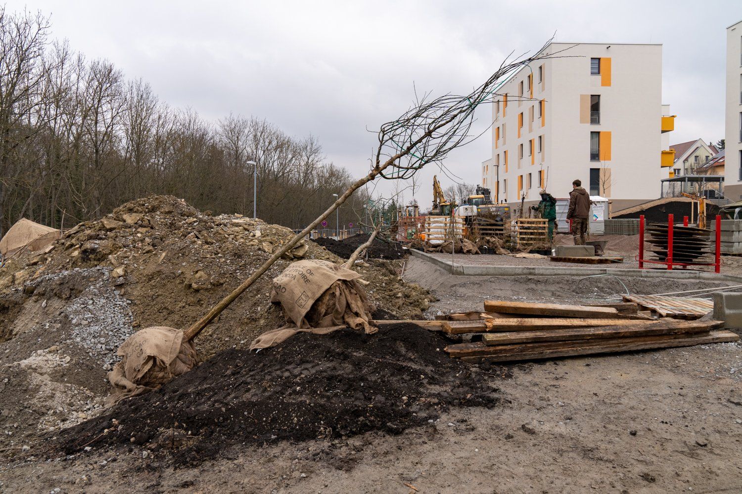 Mit der Gestaltung der Außenanlagen rund um die Gebäude des zweiten Bauabschnitts in der Paul-Klee-Straße neigen sich die Bauarbeiten dem Ende zu. Um unseren Mietern ein schönes und attraktives Wohnumfeld bieten zu können, wurden in den vergangenen Wochen die Grünflächen angelegt und viele Sträucher und Bäume gepflanzt.