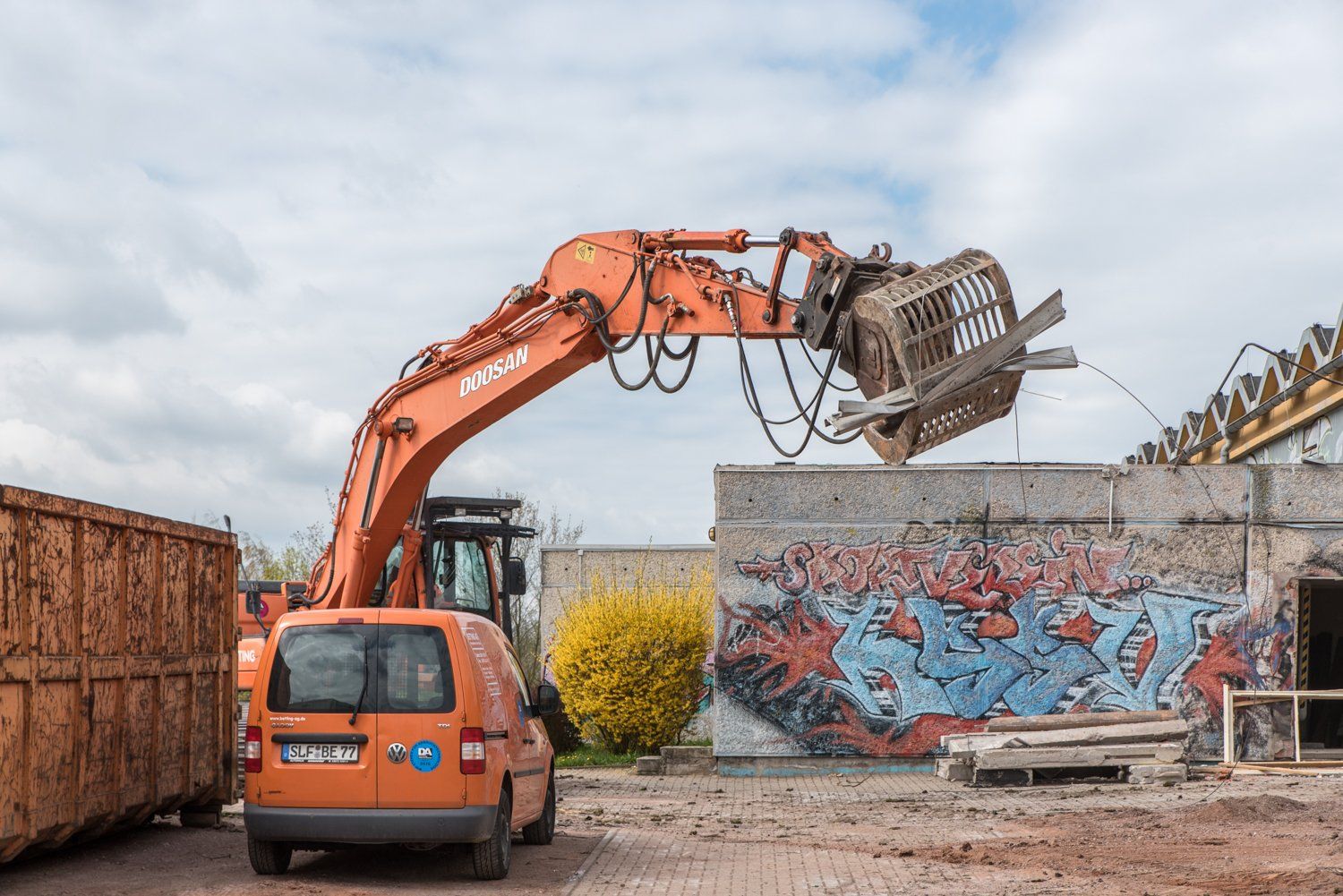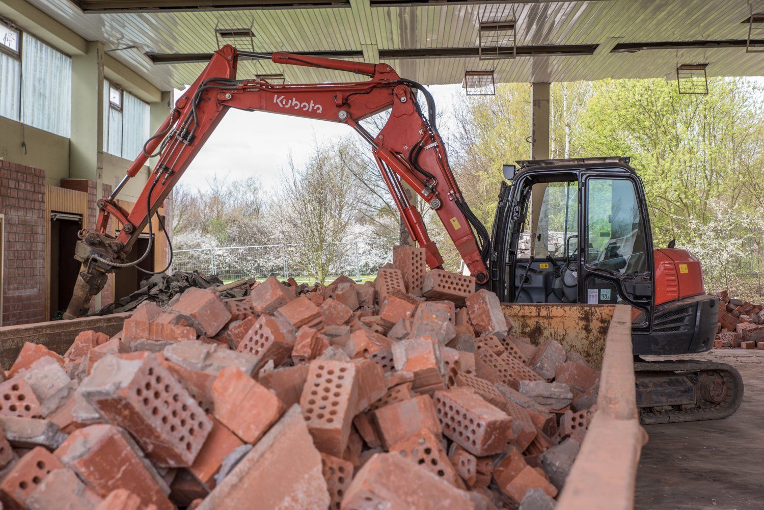 Parallel zu den Abbrucharbeiten begannen die Entkernungsmaßnahmen im Schulgebäude.