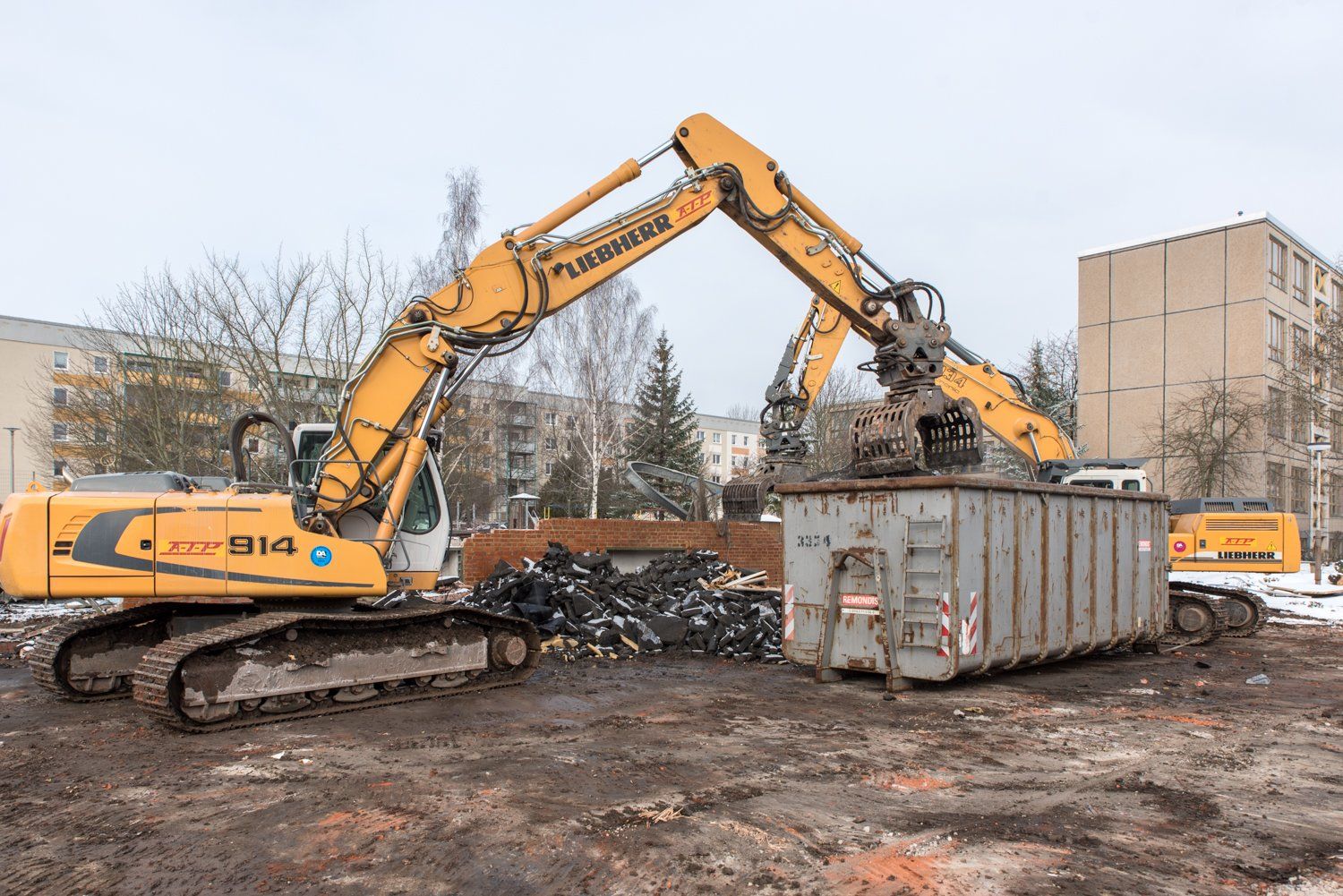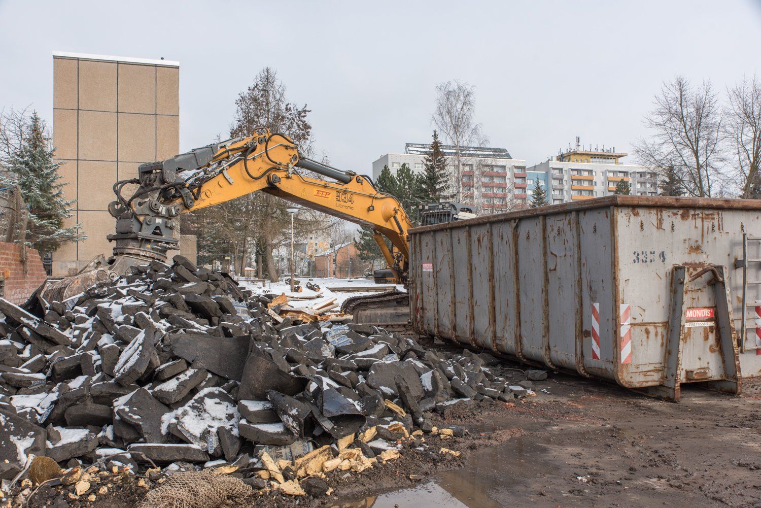 Seit Ende Februar wird die Sporthalle auf dem Gelände der ehemaligen Albert-Schweitzer-Grundschule durch eine Fachfirma abgerissen. Mit mehreren Baggern werden die Überreste der Halle getrennt und anschließend dem Recycling zugeführt. Die Abrissmaßnahmen sollen in der ersten Märzhälfte abgeschlossen sein. Es folgt die Vorbereitung des Baugrundes zur Neuerrichtung der Dreifeldhalle.