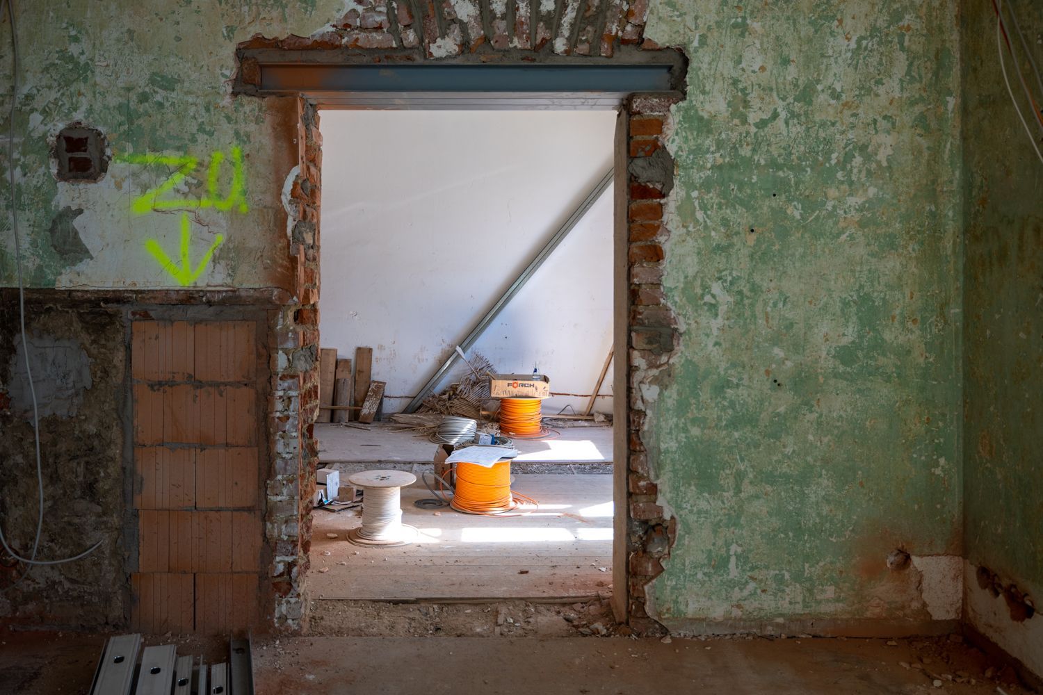 Im Gebäudeinneren wurden Zwischenwände gezogen und die Decken der neuen Wohnungen durch eine Trockenbaufirma abgehangen. Ebenfalls neu sind die Fenster in den Wohnungen. Diese bieten jetzt eine hochwertige Isolierung.
