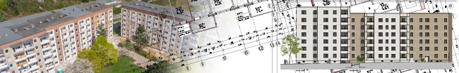 Die Bestandsblöcke der Moskauer Straße 34-37 und 126-134 bilden jeweils die Enden zweier senkrecht zueinander stehender größerer Wohnzeilen. Bedingt durch die einfache Technologie der WBS-70-Baureihe entstand eine offene, unattraktive Quartiersecke, markiert durch zwei 6-geschossigen Gebäudegiebel ohne eine einzige Fassadenöffnung.