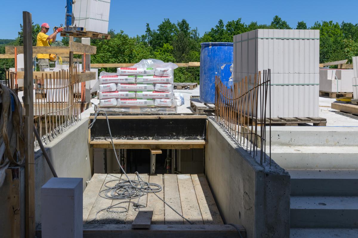 Die Rohbaumaßnahmen in der Moskauer Straße 126 im Stadtteil Weimar-West haben begonnen. Neben umfangreichen Betonsägearbeiten wurde auch die abgetreppte Fundamentierung für den Erweiterungsneubau geschalt, bewehrt und betoniert. Zudem wurde der Baukran durch die Rohbaufirma aufgebaut, so dass jetzt Wände und Decken des Neubaus hergestellt werden können. Aufgrund der unterschiedlichen Gebäudehöhen der Bestandsgebäude von rund 60 Zentimetern wird der Aufzug im Verbindergebäude 15 Haltestellen anfahren. In den kommenden Wochen werden jetzt die Trockenbauarbeiten in dem Bestandsgebäude beginnen. Parallel dazu werden Stemm- und Schlitzarbeiten im Inneren des Gebäudes und die vorbereitenden Arbeiten für die Montage der Fenster aufgenommen. Fotos: Johannes Krey | JKFotografie & TV