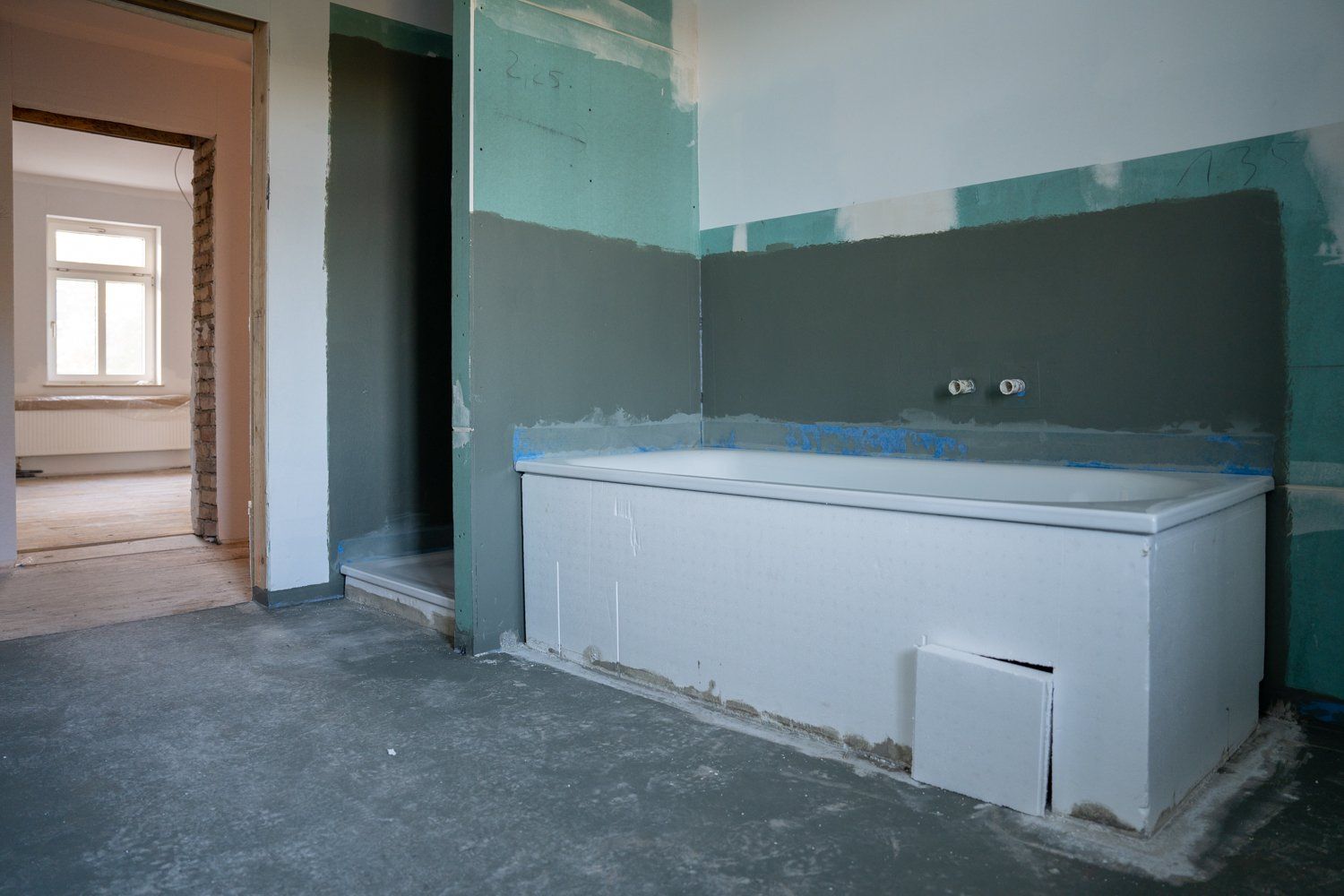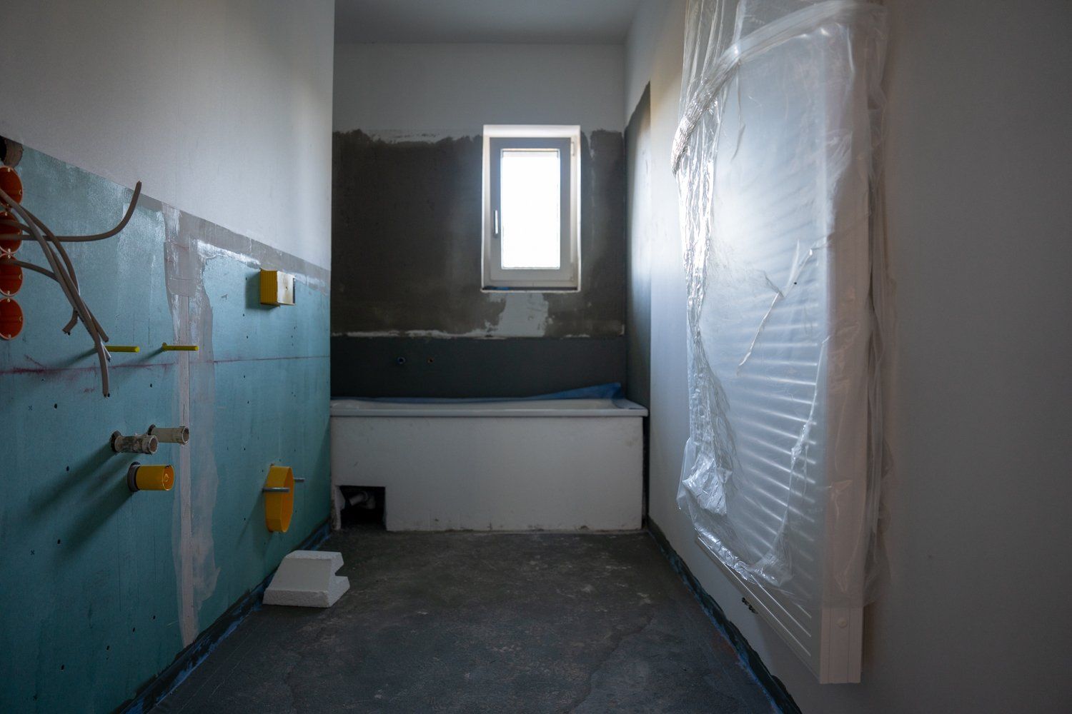 In den neuen Bädern der Wohnungen wurden bereits einige Badewannen und Duschen installiert. Die restlichen Sanitäranlagen werden in den nächsten Wochen eingebaut.