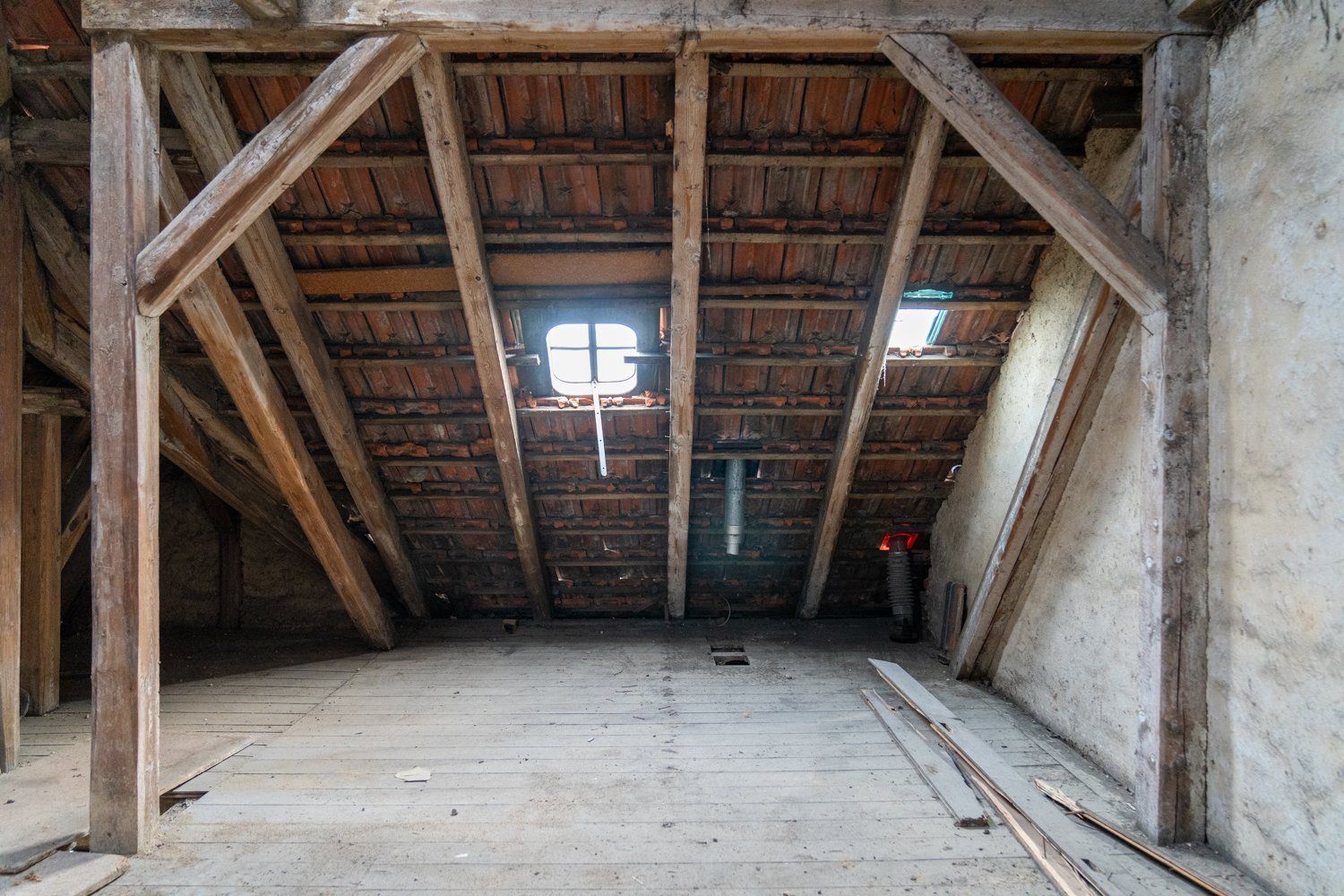 Eine Fachfirma ist derzeit damit beschäftigt, die alten Dachziegel und Fenster komplett zurückzubauen. In den kommenden Wochen wird der Dachunterbau und die Eindeckung erneuert.