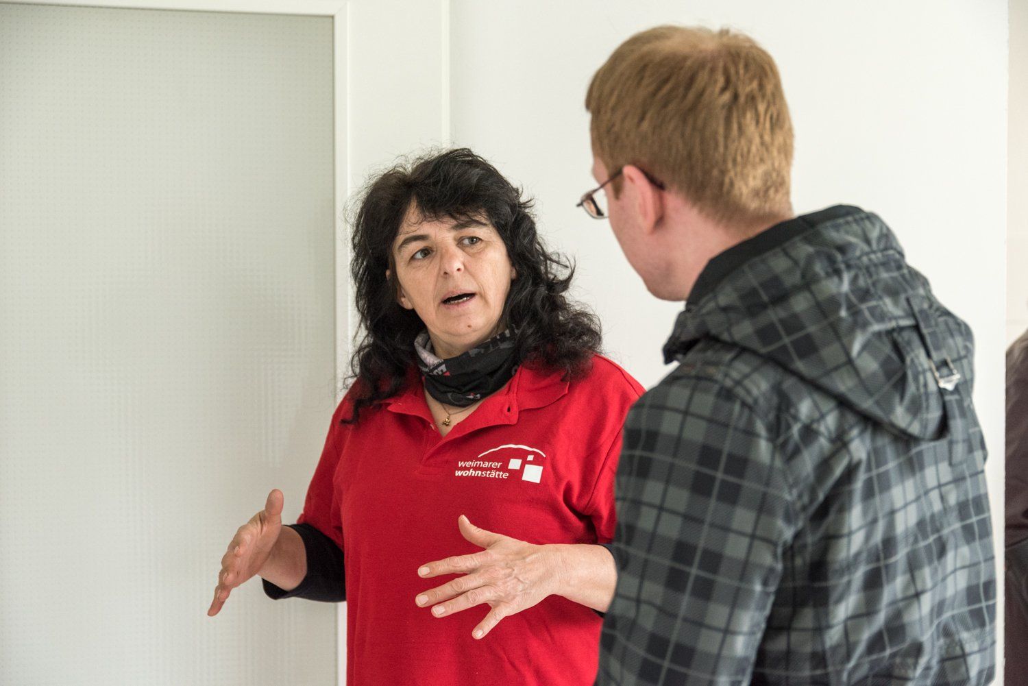 Die Weimarer Wohnstätte GmbH lud am Donnerstag, den 4. Mai 2017 zum Tag der offenen Baustelle in die Kaunaser Straße 10 in Weimar-West ein. Interessierte und zukünftige Mieter konnten sich die Wohnungen im Gebäude ansehen. Dabei standen ihnen die Mitarbeiter der Weimarer Wohnstätte zur Seite und beantworteten die Fragen der Besucher. Auch der Lebenshilfe-Werk Weimar/Apolda e.V. und der Salus Pflegedienst präsentierten ihre Wohnbereiche für Personengruppen mit unterschiedlichem Assistenzbedarf.